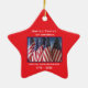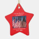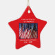 250º Aniversario 1776 a 2026, Estados Unidos de América, Ornamento de Árbol de Navidad. ¡Un gran hito para Estados Unidos! Foto de banderas norteamericanas ondeando en el viento, y texto patriótico hacen de esto un maravilloso keepsake - ¡un acontecimiento de una vez en la vida! Gran Navidad adorno con forma de estrella premium. Todos los derechos reservados © 2025 Alan & Marcia Socolik.