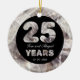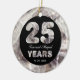 ¡Celebra el 25 aniversario boda de tu pareja favorita con este adorno personalizado! Un efecto espumoso de color plateado forma un borde festivo de luz. Dos nombres, las palabras "25 años" y una fecha de boda u otra fecha significativa, aparecen cerca del centro y pueden ser personalizados.