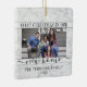 Celebra la alegría de tu nuevo lugar con una foto personalizado 2 "Primera Navidad en nuestro nuevo hogar" cuadrada de adorno de cerámica de mármol falso. El texto y las imágenes de esta plantilla son fáciles de personalizar. (IMAGEN PLACEMENT TIP: Una manera fácil de centrar una foto exactamente como quieres es recortarla antes de subirla al sitio web de Zazzle.) El diseño presenta un elegante borde de mármol en blanco y negro, caligrafía de escritura moderna a mano, nombre y año de la familia de la tipografía de máquina de escribir y dos imágenes de su elección. Este exclusivo toque familiar añade un toque elegante a la decoración de la casa de Navidad o hace una idea de regalo para el inquilino. ¡No hay lugar como una casa nueva para las vacaciones!