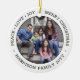 Celebra las simples alegrías de las vacaciones con un personalizado de dos adornos de cerámica redondo blanco y negro. Todos los textos e imágenes de esta plantilla son fáciles de personalizar y pueden ser diferentes o iguales en el frente y en el reverso. Si es preferible, cambia "Peace Love Joy Merry Christmas" a cualquier cita o frase. (CONSEJOS DE DISEÑO DE IMÁGENES Y TEXTO: 1) Para ajustar la posición de la redacción, agregue espacios al principio o al final. 2) Para centrar la foto exactamente como quieras, córtelo en una forma cuadrada antes de subirla al sitio web de Zazzle.) El diseño minimalista moderno cuenta con un sencillo borde blanco y negro, un elegante nombre y año de tipografía y 2 imágenes de su elección. Este único toque familiar añade un toque elegante a la decoración de casa de Navidad.