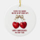 Celebrate your 4th anniversary with this charming fruit-themed greeting card! Featuring two cherries tied with a bow and the sweet message "You're the cherry on top of my every day," it’s perfect for the fruit year of marriage.