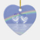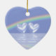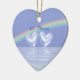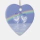 Ornament with my image of diamond hearts floating on the water under a rainbow.