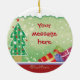 Para tu nieto, este Navidad, dale el regalo de este adorable adorno de cerámica. Un Santa muy dulce con una barba blanca esponjosa y los renos más cortos son retratados sonriendo entre ellos en el frente, con las palabras Feliz Navidad a un maravilloso nieto ya impreso como parte del diseño. Puedes personalizar el frente con el nombre y la parte posterior de tu nieto con tu propio saludo y fecha especiales. La parte trasera de este magnífico ornamento también está ilustrada con un árbol de Navidad y algunos regalos. Un pequeño regalo que será realmente valorado para siempre.