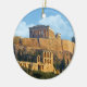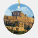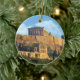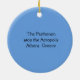 Ornamento cerámico redondo con una imagen del glorioso Partenón sobre la Acrópolis y los arcos del anfiteatro Herodes Atticus abajo en Atenas, Grecia. La parte posterior es azul con texto de personalizable. Ver toda la colección de Ornamentos de Grecia en la sección HOME.