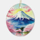 Este adorno navideño de personalizable presenta un retrato acuático del Monte Fuji en Japón.
