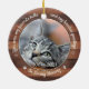 Honra a tu mejor amiga con un adorno conmemorativo de un mascota de fotos personalizado. Este singular recuerdo de adornos de mascota es el regalo perfecto para usted, familia o amigos para rendir homenaje a su ser querido. Este ornamento conmemorativo de perros muestra tus fotos, huellas de pata y Cita "Fuiste mi saludo favorito y mi más difícil adiós ~ In Loving Memory". Personalizar con fotos favoritas de perros mascotas o gatos, y nombre . El ornamento es de doble cara, puedes hacer dos fotos favoritas, una a cada lado. Personalice el nombre en la parte delantera y las fechas en la parte posterior. Perfecto para un monumento a los Navidades. DERECHOS RESERVADOS © 2020 Judy Burrows, Black Dog Art - Todos los derechos reservados. Rústico Mascota conmemorativo favorito Hola, adiós adorno cerámico