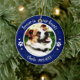 Adorable Perro Rústico Memorial de Mascota Personalizado Foto Azul Ornamento de Cerámica