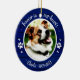 Adorable Personalizado Rústico Perro Mascota Memorial Foto Ornamento Cerámico Azul
