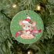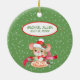 "Mi primera Navidad" declara el cartel debajo de una adorable imagen de ratón en este adorable adorno de Navidad. El ratón lleva un sombrero Santa rojo y blanco y una corbata de arco rojo. Las estriberas holly decoran la pancarta y el gorra, y una cinta roja se riega detrás de la imagen. Confeti de copos de nieve verde pálido llena el fondo. La parte posterior del ornamento tiene una versión más pequeña de la imagen frontal, con un cartel que contiene dos campos de texto para que pueda personalizar. ¡Un maravilloso recuerdo de la Primera Navidad del Bebé!