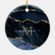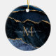 Adorno De Cerámica Agate Navy Blue Gold Gemstone Marble Monograma