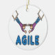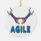 Agile design muestra a artistas trapecio sobre la palabra Agile creando un divertido gráfico para gurús ágiles, maestros de matorral y equipos de proyectos.