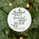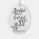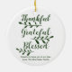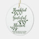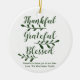Agradecimiento Agradecimiento Bendición escritura moderna personalizado caligrafía tipografía Acción de Gracias regalo de vacaciones personalizado Favor Navidades adorno de vacaciones. Personalizable completo del texto verde pino oscuro sobre fondo blanco.