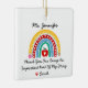 ¡Qué regalo tan atento y personalizado! Este adorno de cerámica personalizado es una hermosa manera de expresar gratitud a un profesor que ha tenido un impacto significativo en su vida. El mensaje "Gracias por ser una parte importante de mi historia" es sincero y significativo, transmitiendo la idea de que este profesor ha jugado un papel crucial en la configuración de tus experiencias y recuerdos. El adorno en sí es un adorable conservador que se puede colgar en el árbol de Navidad o mostrarse todo el año, sirviendo como recordatorio de la influencia del profesor y de su aprecio por su dedicación.