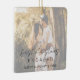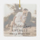 Navidades modernos ornamentación con un diseño simple con "nuestras primeras navidades comprometidas" en una tipografía de escritura de estilo rústico junto con tus nombres y año sobre tu foto favorita con un overlay opaco. La superposición puede eliminarse en la herramienta de edición de diseño. Este elegante adorno es un gran regalo para una pareja recién comprometida.