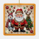 Un diseño festivo con un muñeco de nieve, Santa, ciervo y un árbol de Navidad decorado, ambientado en un fondo dorado y salpicado de flores, que evoca la calidez y la magia navideña. "Imagen original generada por Meta AI. La IA generó obras de arte. Con licencia CC BY-SA 4.0."