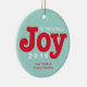 Mantener relaciones profesionales y dejar una impresión duradera con estos adornos navideños con el logo personalizado. Este adorno promocional lleva el saludo de vacaciones "Alegría al mundo" con el texto de su personalizado en la parte inferior. El reverso de la pantalla muestra el logotipo de su empresa.