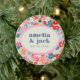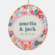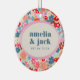 El momento perfecto para recordar su día especial año tras año. ¡El adorno de fotos del boda Blooming Joy le dará máxima diversión a su árbol! Cuenta con un impresionante y audaz jardín de flores azules, rosas y rojas. Arte y diseño de Annie Montgomery Design.