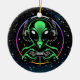 Adornos de Navidad. Extraterrestre alien jugando videojuegos con un controlador y auriculares encendidos. Ideal para creyentes y fanáticos de la Ufología.