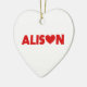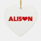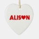 El nombre de Alison con la letra o sustituida por un corazón de amor rojo. Los colores se pueden cambiar.
