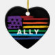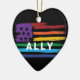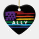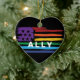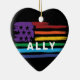 El ornamento con temática de justicia social muestra artística LGBTQ arcoíris derrame bandera arco iris con texto de aliado de personalizable sobre fondo negro