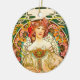 Ornamento con la litografía Reverie de Alphonse Mucha (1897). Un retrato de una mujer con un vestido blanco lee un libro, sentado frente a flores rosas y naranjas. Un gran regalo para los amantes del arte Art Nouveau y bohemio.