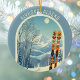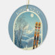 Ornament from a wonderful skiing holiday in the beautiful mountains of Alyeska Alaska ski area! This Ornament features an arch with a stunning blue-grey mountain landscape and retro ski boards in an orange tribal pattern in the foreground. The rest is in a lovely light blue tone with the location lettering in a modern font. The design is a lovely combination of retro and modern, and I hope you enjoy it!