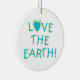 El corazón y el texto azules diseñan amor las camisetas ambientales de la tierra, las tazas, las tarjetas, los pegatinas, las bolsas de asas, las almohadas, las sudaderas con capucha, los botones, los llaveros, y otros artículos para mostrar su ayuda para un ambiente limpio y seguro.