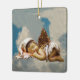 En este adorable ornamento de Navidad de cerámica, se muestra un ángel dormido mientras que, al otro lado, se muestran dos latas de caramelo