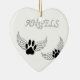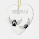 Las patas de un perro y un gato con alas como ángeles. Diseño original en blanco y negro.