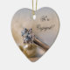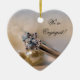 Conmemorar el día en que aceptaste su propuesta de matrimonio con el elegante Anillo de Diamantes y el Ornamento Corazón de Compromiso de Perlas. Este elegante personalizado We're Engaged Ornament presenta una fotografía de primer plano de un anillo de compromiso de diamantes de corte redondo y un collar de perlas blancas.