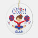 Azul y ornamento personalizado animadora triguena linda roja de la alegría. Fácil personalizar con su nombre y fecha. Visite nuestra tienda para ver este ornamento en una gran variedad de colores de la escuela y de colores del pelo