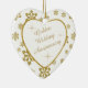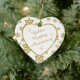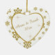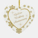 Este es un elegante adorno para celebrar el 50 aniversario del Boda de una pareja, ya sea en el momento de la celebración o para Navidades. Cuenta con un corazón blanco enmarcado en un falso purpurina dorado sobre un copo de nieve a juego purpurina dorado sobre fondo blanco. Dentro del corazón blanco está tu texto en oro a juego, más imágenes de estrellas doradas brillantes. El texto es completamente personalizable, así que puedes hacer que diga lo que quieras. Hay un segundo campo de texto en la parte posterior, que tiene el mismo borde dorado de copo de nieve y la misma imagen interior. Este es un regalo especial para la familia que será valorado para siempre. *Atención: la imagen está impresa y el adorno no no contiene purpurina.*