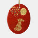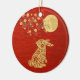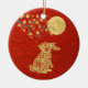 Tonos rojos y dorados, con diseños de luna y conejo. Personalizar el texto de la parte posterior con las herramientas de diseño.