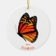 Este adorno con temática mariposa presenta una mariposa monarca ilustrada con marcas típicas en tonos naranjas, negros y blancos - personalizar con nombre y año conmemorativo - de katz_d_zynes