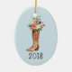 El adorno Keepsake cuenta con un ilustracion acuarela de una funda nórdica con un ramo de flores sobre un fondo azul claro. Personalizar con año u otro texto especial
