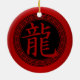 Celebre el Año del Dragón con este llamativo diseño que presenta el símbolo chino (o kanji japonés) para el dragón rodeado por un adorno marco redondo de estilo oriental sobre un fondo rojo y negro.