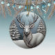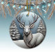 Este ornamento redondo de reno cerámico presenta un diseño festivo único y elegante. El fondo muestra una escena nocturna nevada de Navidades serenos, con un cielo azul. Debajo, un pintoresco paisaje de nieve de invierno con árboles está iluminado suavemente por el resplandor de la luna. El ciervo plateado con ánimos añade con gracia un toque de magia y el espíritu navideño navideño al adorno. La misma imagen está en la parte delantera y trasera. Esto garantiza que, independientemente de cómo se torne el adorno, siempre se ve festivo y completo. 🦌 🎄