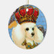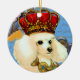 Este caniche querido lleva su collar de oro y una corona impresionante. Lo llamo mi rey del cangrejo, pero también podría ser un caniche chica. Es un perro de albaricoque color crema. El fondo es azul con escritura francesa de los nombres de los cangrejos y dulces adornos de los perros. Si necesitas ayuda o para preguntas contacta a Greer en greerdesign@aol.
