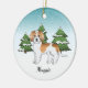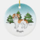 El personalizado original de Destei ilustracion de un lindo perro de raza dordendoodle de color de albaricoque de color participante. El perro es colocado en una escena invernal con tres abetos verdes y la caída de la nieve. El fondo es un degradado de azul a blanco que da al diseño ese aspecto frío del invierno. También hay un área de texto personalizable para un nombre.