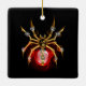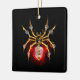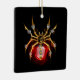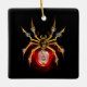 Araña mecánica, de vapor punk con oro, engranajes de latón y una lámpara de vidrio roja sobre un fondo negro. Estilo Steampunk.
