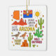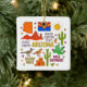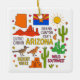 Commemorate your trip to the state of Arizona with this modern keepsake Christmas ornament, featuring hand-drawn style illustrations of iconic food, animals, landmarks, landscapes, and culture. Personalize the back to mark your US adventure and create a memory you'll hang up on the tree for the Holidays year after year.