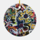 Ornamento cerámico único funky con arte abstracto pintado a mano