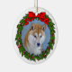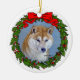 Dibujo de un perro Shiba Inu rojo en un adorno navideño por Glenda S. Harlan.