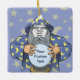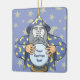 Viejo mago con capa azul y bola mágica de cristal. Usa la foto cara a personalizar. Texto personalizado.