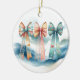 Un agradable arreglo de tres arcos con colas de rayas, cada uno con un patrón único de diseño sutil en tonos suaves, todo realzado con un toque de acuarela. Este elegante ornamento con temática de arco le dará un toque de elegancia a su árbol.