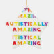 Diseño hecho con amor por la conciencia del autismo. Las letras del arcoiris afirman lo obvio... que usted o uno amado es 'Autistically Amazing'!