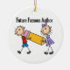 Un chico y un chica con figuras de palos llevan un enorme lápiz amarillo y el texto dice "Futuro Autor Famoso", un diseño lindo en camisetas, tazas, tarjetas, bolsas de té y otros artículos perfectos para la persona a la que le encanta escribir!
