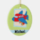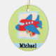 Guay, avión de niño colorido, diseño de plano rojo, azul sobre rayas verdes y blancas de cal brillante, patrón rayado. ¡Un regalo perfecto para el bebé, el niño, los niños, los adolescentes o los adultos! Personalizó la plantilla de diseño agregando el nombre o el texto personalizado de un hijo. Visita nuestra tienda, Birthday Party House, para más grandes productos de personalizable y chica!