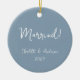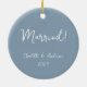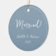 Celebra tu primera Navidad como pareja casada con este adorno de cerámica azul polvoriento boho personalizado. Con un encantador guión escrito a mano, este adorno muestra maravillosamente los nombres de la novia y el novio, junto con el año. El tono azul tierra le da un toque de elegancia natural, lo que lo convierte en un lugar perfecto para este hito especial. Personalízalo con tus nombres y el año para crear un adorno único que capte el amor y la alegría de tu primera temporada de vacaciones como marido y mujer.