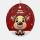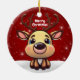 Celebrate the holiday season with this red festive oval ceramic ornament featuring an endearing woodland forest animal cartoon graphic of a cute baby deer with poinsettia flowers tucked in the fawn's ear, and Merry Christmas written in white. Perfect for decorating your tree or as a thoughtful gift, this whimsical floral doe decor makes a cherished keepsake for years to come. Customize by changing the text, the font, the font color, or remove the text. You can even transfer this design onto other products. Enjoy this design your way! Check out ForestBabies Xmas Deer Collection for matching decorations. 🎄🦌